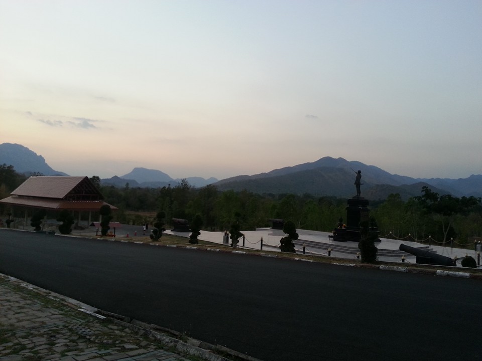 ตอนแรกผมคิดว่า(คิดไปเองอีกแล้ว) เป็นที่ที่เขาสร้างใหม่อะครับ ที่มีพระมหากษัตรย์ 9 องค์ องค์ใหญ่ๆ ยืนเรียงกัน เพราะทางเข้าเขาก็กำลังสร้างอยู่ครับ ผมเลยคิดว่าใช่ที่เดียวกันหรือป่าว แล้วมันอยู่ข้างทางพอดีก็เลยแวะสักหน่อย พระอาทิตย์ลับขอบฟ้าไปแล้วนะครับ อากาศดี๊ดี ชีวิตดี๊ดี เย็นสบายยย