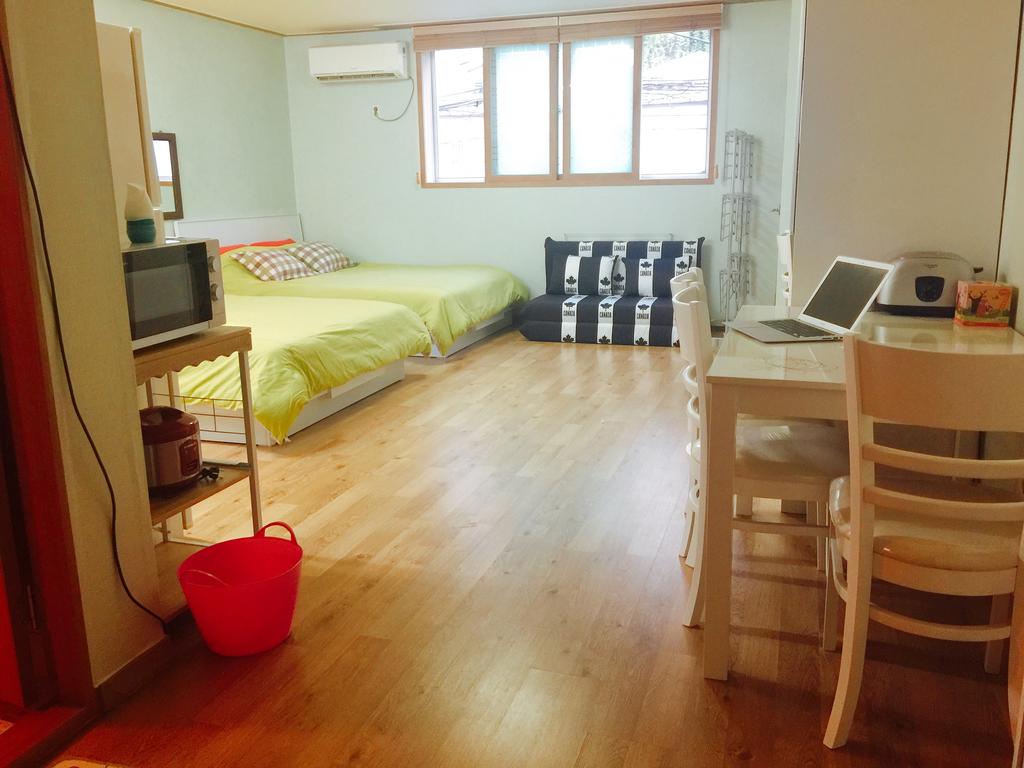 - ณ เกาหลีใต้ วันแรกเราไปถึงประมาณบ่าย 3 กว่าๆ กว่าจะเสร็จพิธี ตม. ก็ถึงโซลประมาณ 5 โมงเย็นแล้วค่ะ ทริปนี้พวกเราพักที่ Central Apartment ค่ะ อยู่ใหล้กับโซลสเตชั่น ซึ่งจองผ่าน Booking.com ค่ะ จ่ายเงินวันเข้าพักเลย