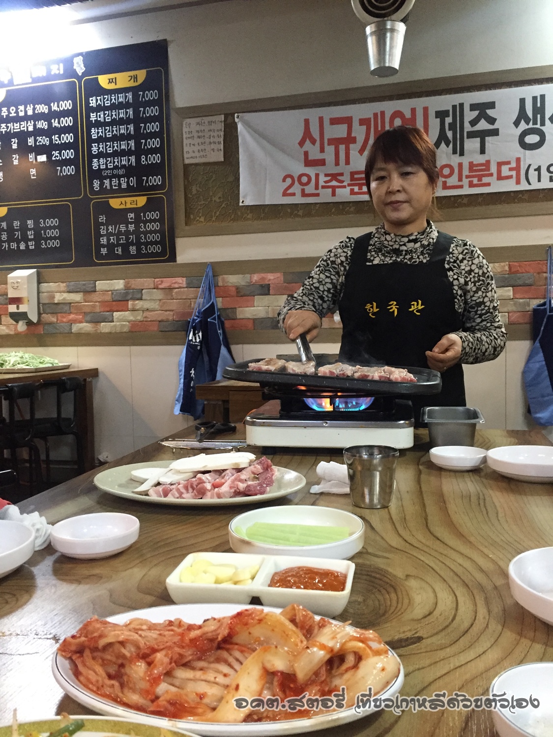 หลังจากพักทานอะไรอุ่นๆให้พอคลายหนาวกันแล้ว พวกเราก็ไปทาน "ซัลกยอบซัล" หรือหมูสามชั้นย่างที่ย่านอึลจิโรค่ะ