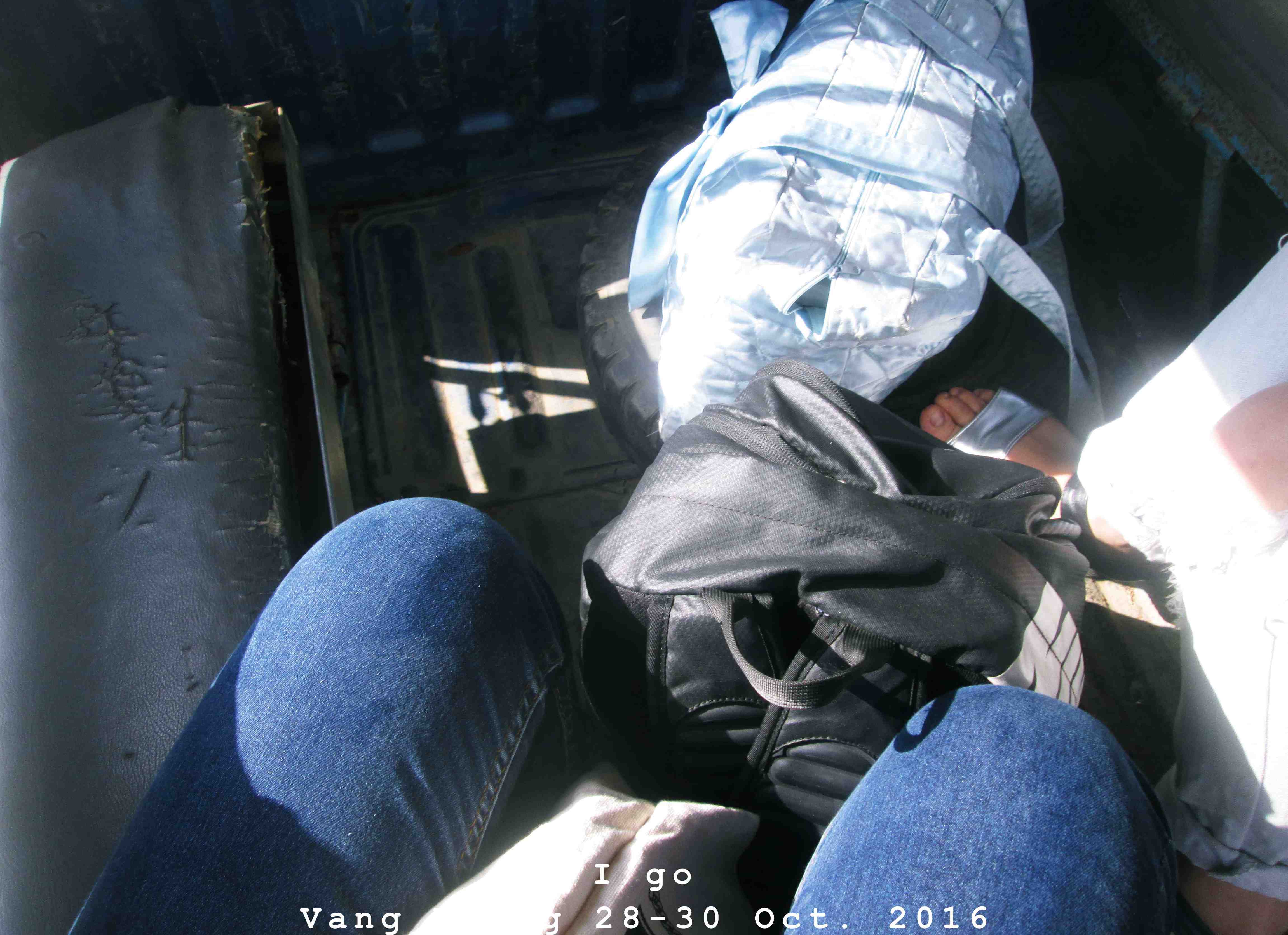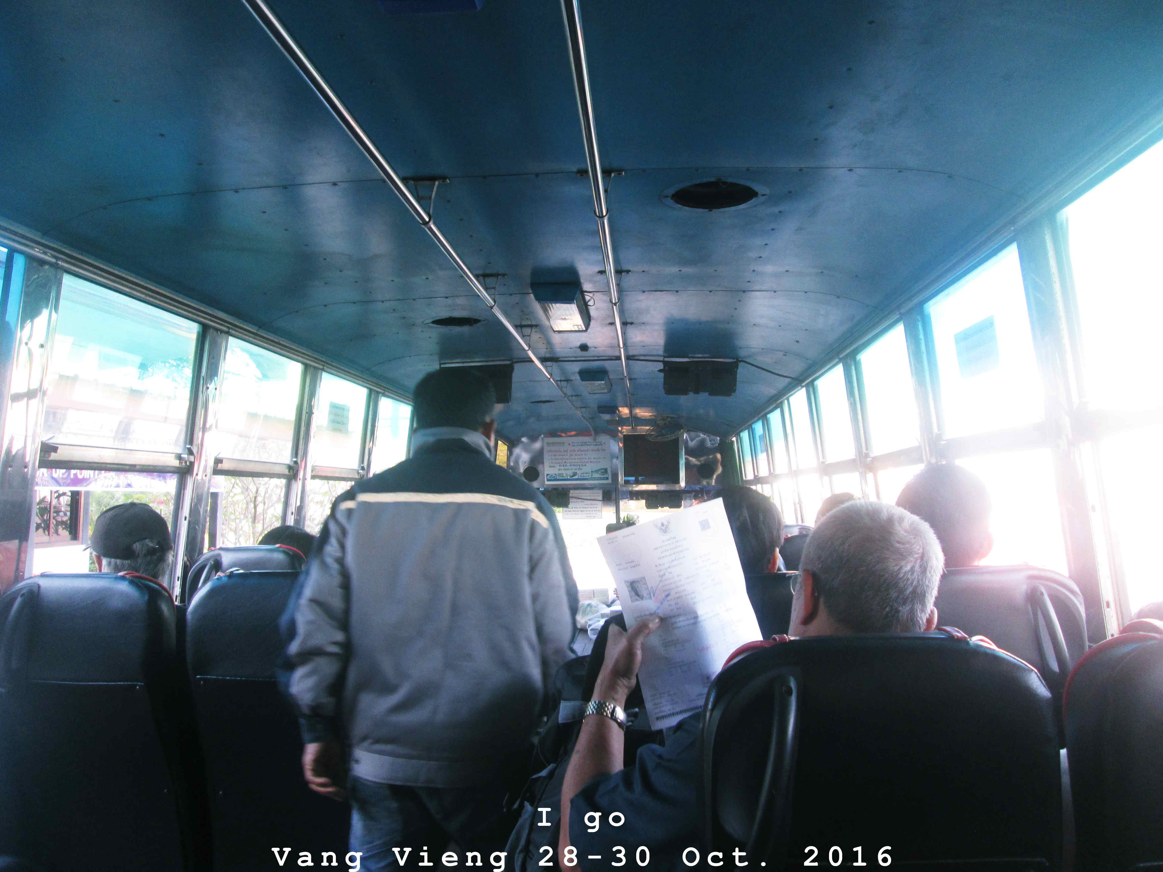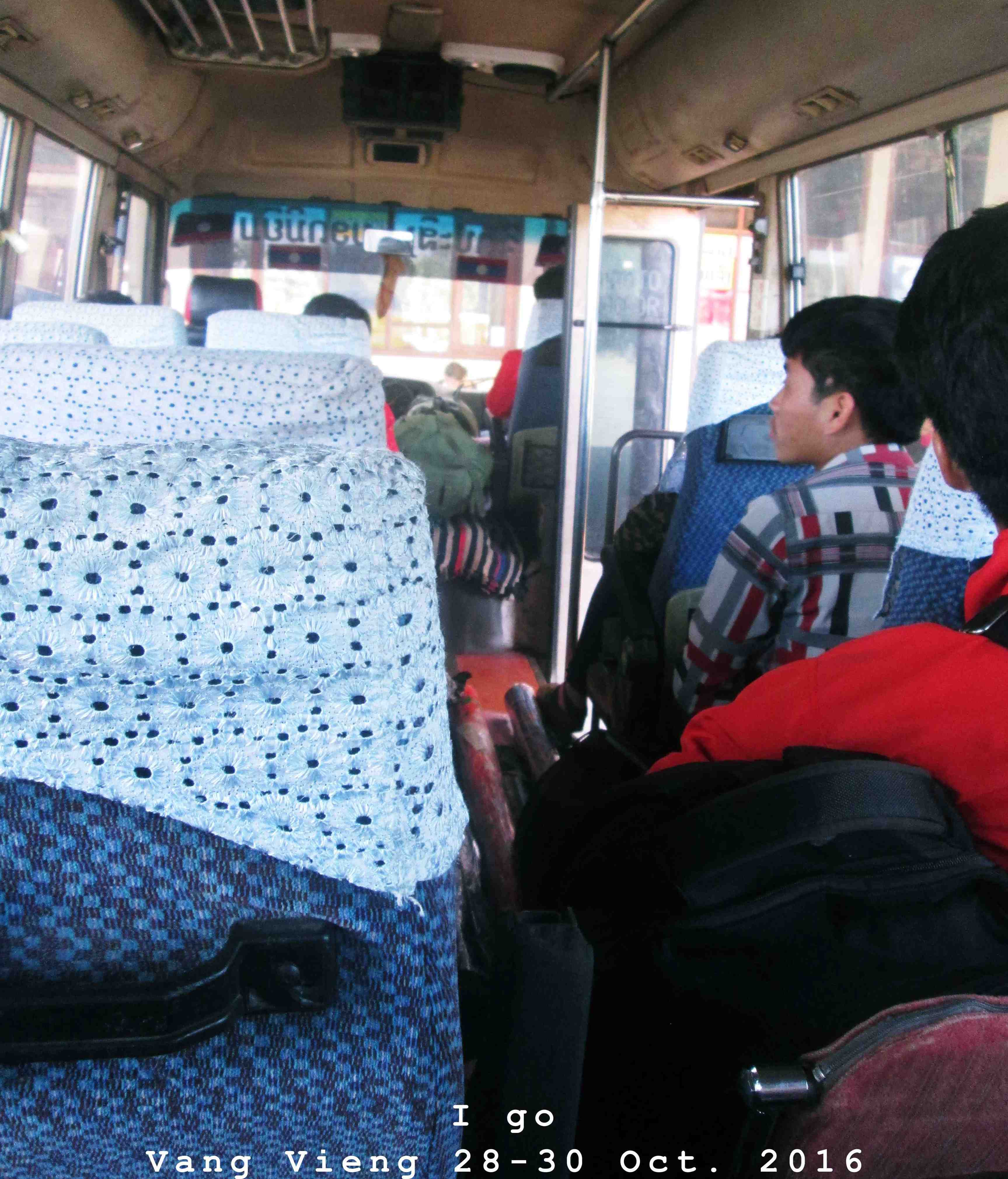 จะเป็นรถมินิบัส ที่แคบมาก ของเยอะมาก ด้านหลังนี่เต็ม ตรงพื้นก็เต็มไปด้วยของ แต่ด้วยที่ไม่รู้จะทำไงต่อก็หน้าด้านนั่งต่อไป ราคา 40,000 กีบ เออถูกว่ะ