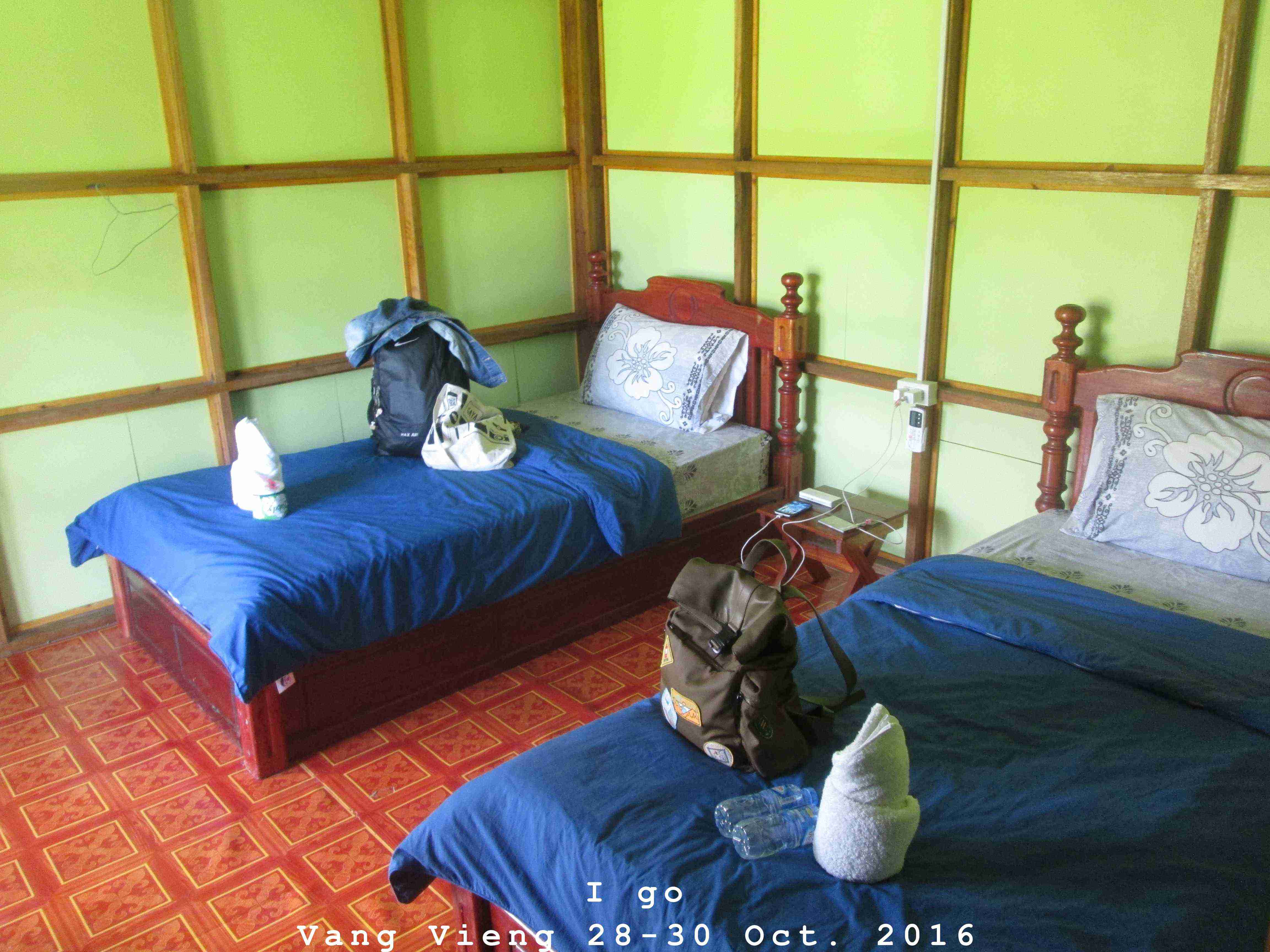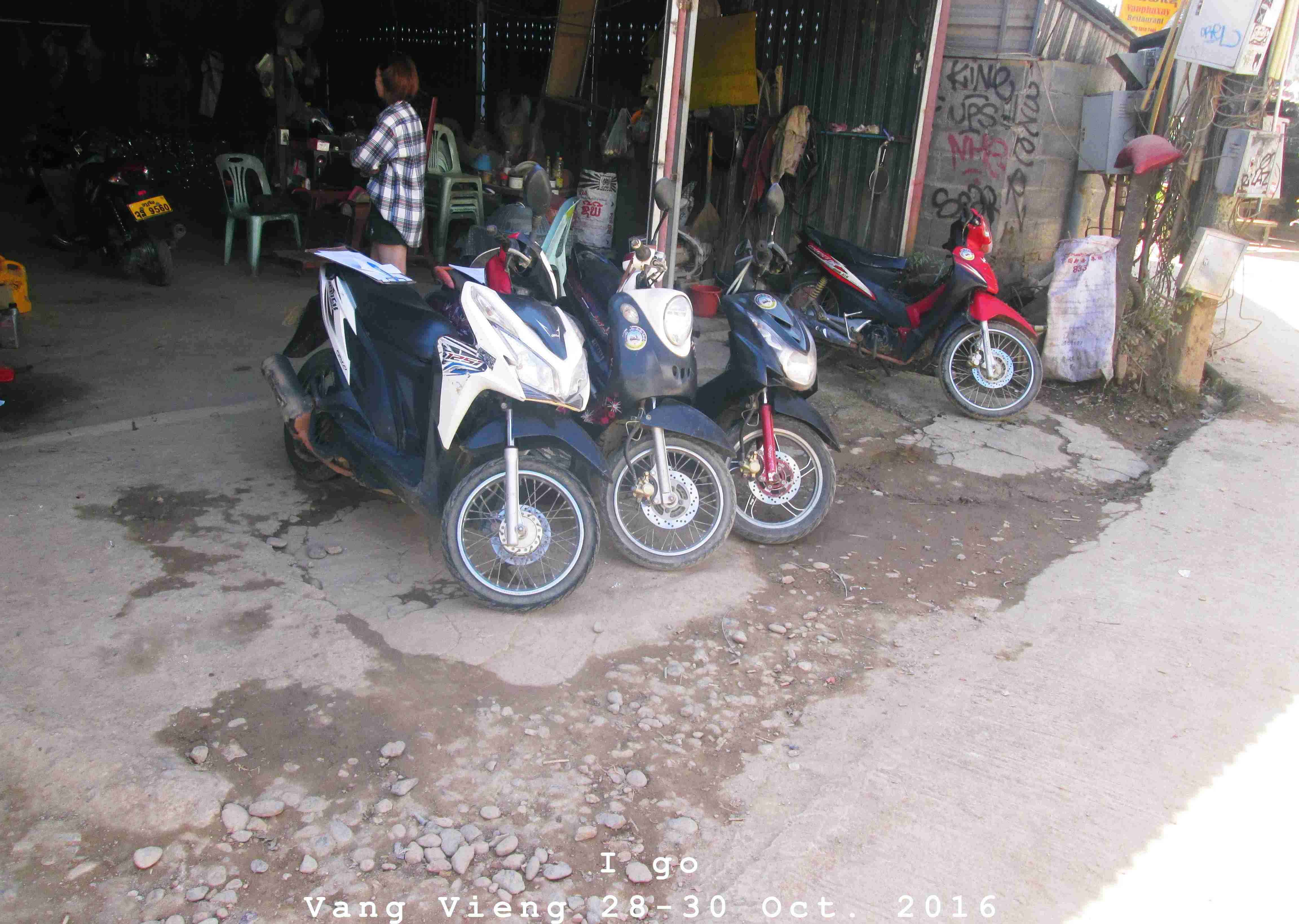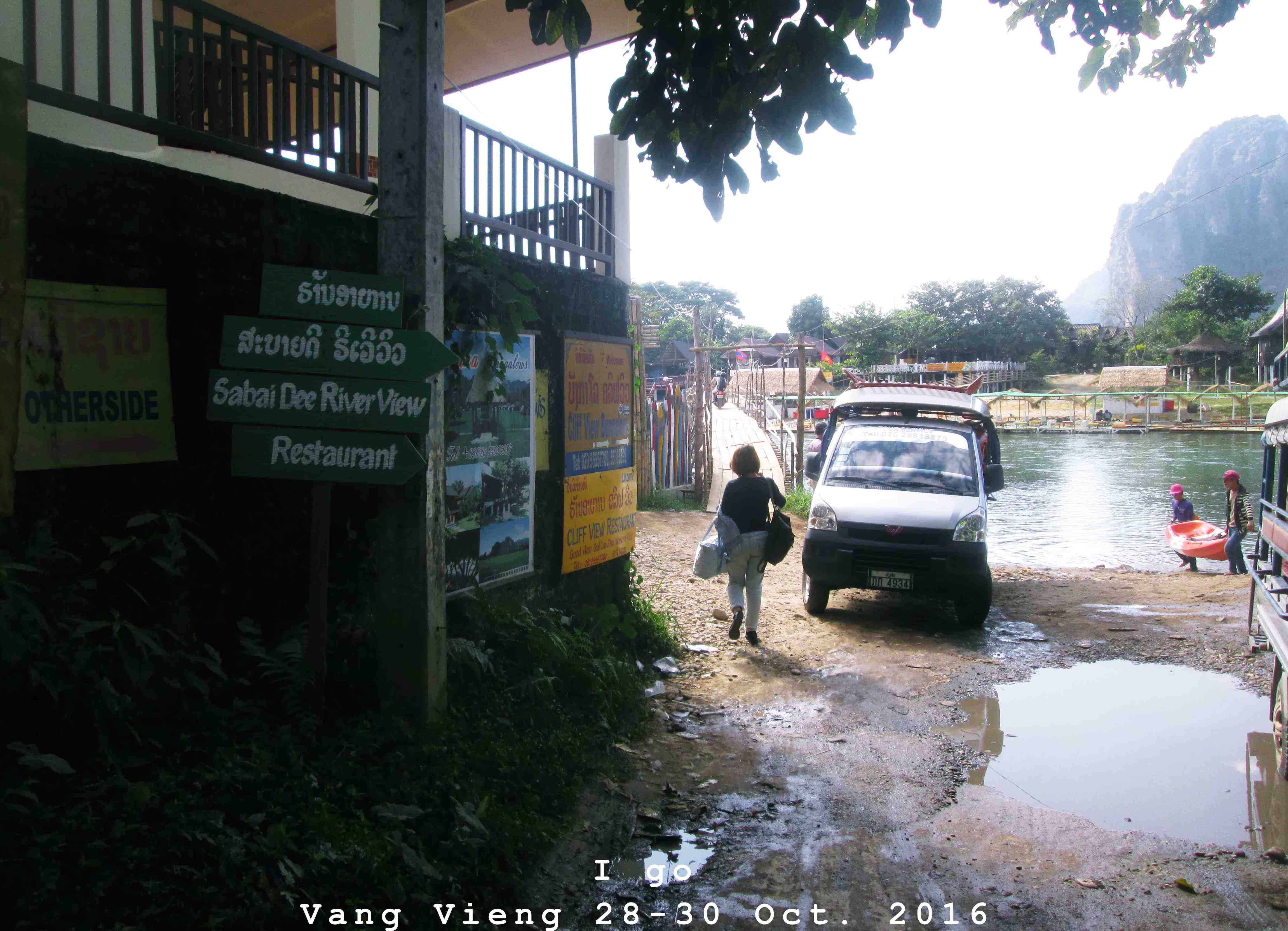 และแล้วเราก็มาถึงวังเวียงด้วยความปลอดภัยค่ะ แต่กว่าจะถึงนี่นะ ในใจวิตกกังวลมาก คิดไปต่างๆ นานา ก็สภาพรถดูเหมือนจะโดนหลอกซะขนาดนั้น