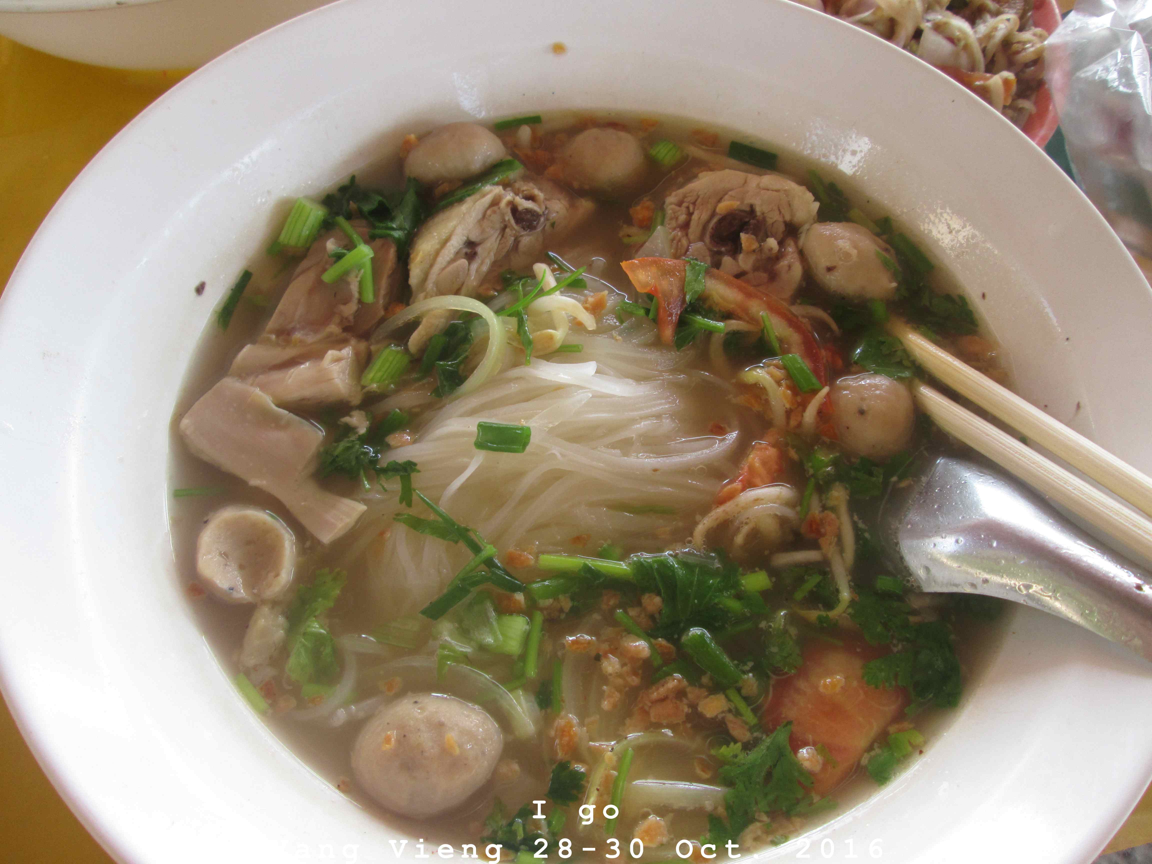 รายการอาหารของเรา เรากินแค่ก๋วยเตี๋ยวค่ะ นอกนั้นของพี่ 5555 ก๋วยเตี๋ยว 20,000 กีบ ส้มตำ 10,000 กีบ ข้าวเหนียว 5,000 กีบ