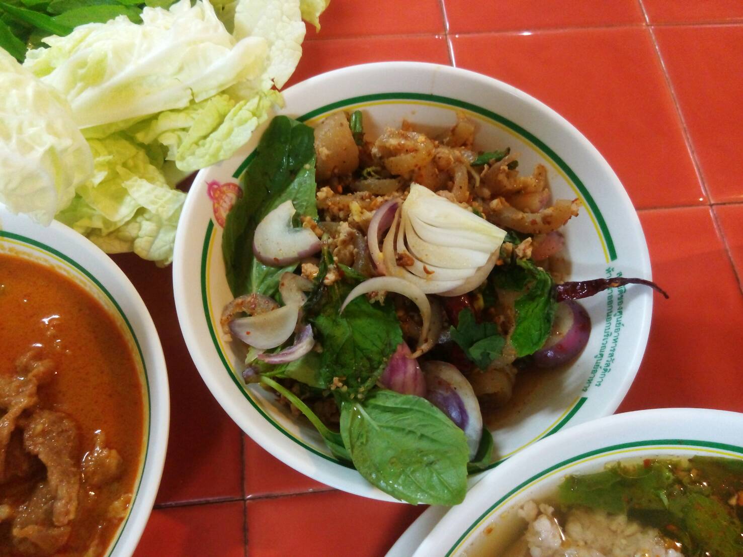พริกที่นี่เผ็ดใช้ได้ ทุกร้าน ลาบก็เผ็ด(พริกแห้งคั่ว)แต่มีผักแนมช่วย