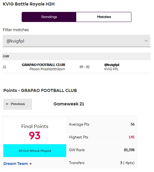 แต่อันดับใน KVIG league และ KVIG H2H ตกลงไป ชี้ให้เห็นว่าผู้เล่นใน league ของเรานั้นแข็งแกร่ง