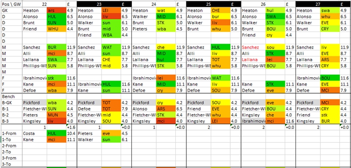 ในครึ่ง season แรกการวางแผนล่วงหน้าอาจะไม่ใช่สิ่งจำเป็นนัก แต่สิ่งนี้จะเปลี่ยนไปในครึ่งหลัง เพราะการจะใช้ chips ทั้งสี่นั่นคือTriple Captain, Bench Boost, All Out Attack และ Wildcard ให้มี potential สูงสุด รวมทั้งการวางแผนรับมือ blank/double GW นั้นต้องอาศัยการวางแผนอย่างมาก