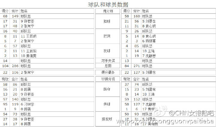 สถิติรายบุคคลลีกจีน ฤดูกาล 2016-2017 Best Scorer (Spike, Block, Serve, Total) 1) หลี่ จิ้ง Zhejiang 2) Rourke Sichuan 3) จาง ฉางหนิง Jiangsu 4) กง เสียงอวี่ Jiangsu 5) Mihajlovic Tianjin 6) Carrilo
