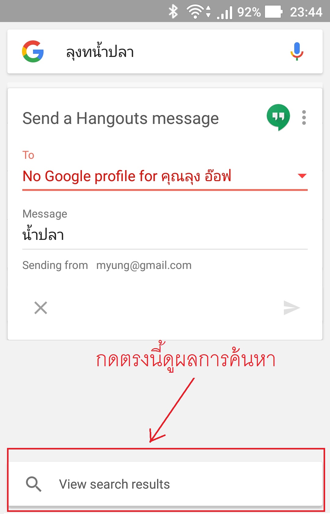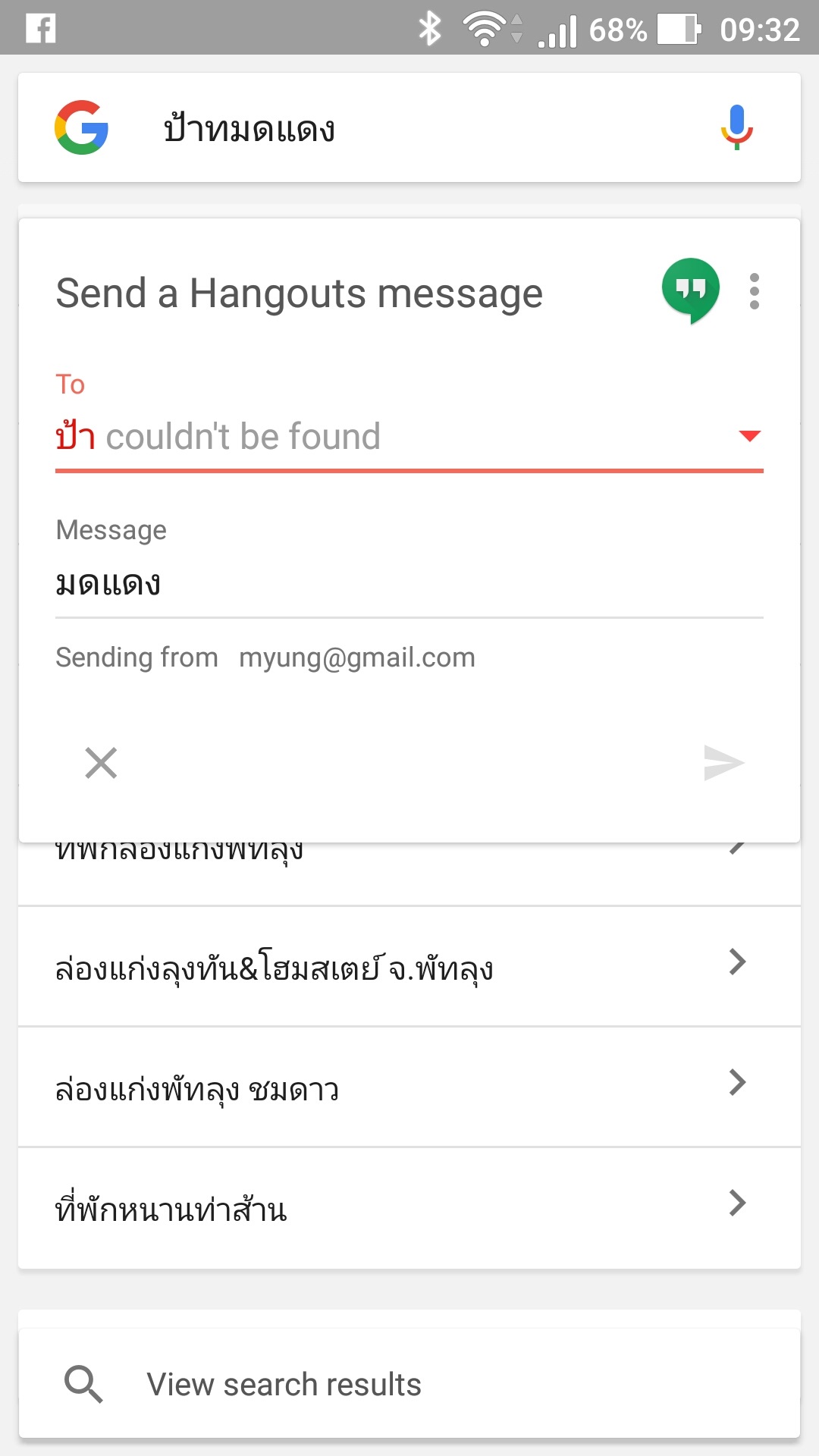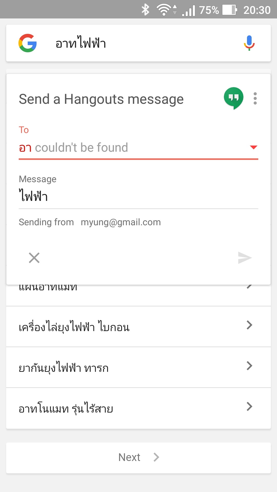 Google app บน Android ค้นคำว่า อาทไฟฟ้า ไม่ได้ กลายส่งข้อความหา "อา" ซะงั้น