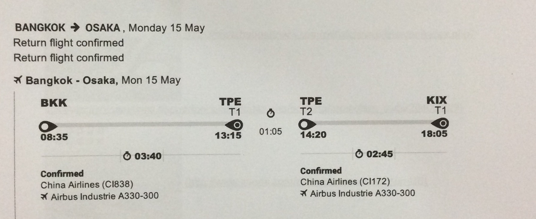 เผลอกดซื้อตั๋ว china airline ไป osaka จะถามว่า ต่อเครื่องที่ไทเปให้เวลามาแค่1ชม จะทันไหมครับ