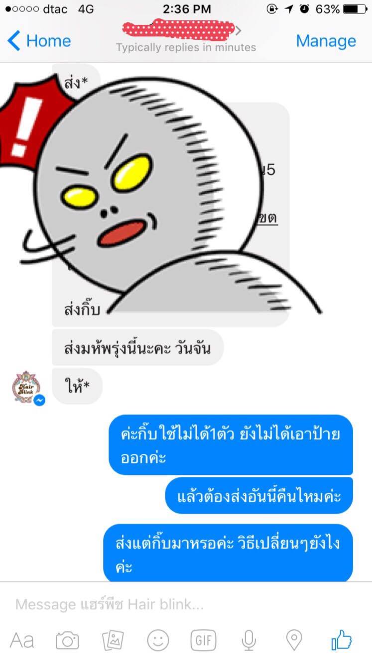 เราแจ้งไปว่าขอเปลี่ยนค่ะ เรายินดีส่งอันเก่าคืนและรอรับอันใหม่ค่ะ
