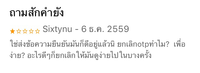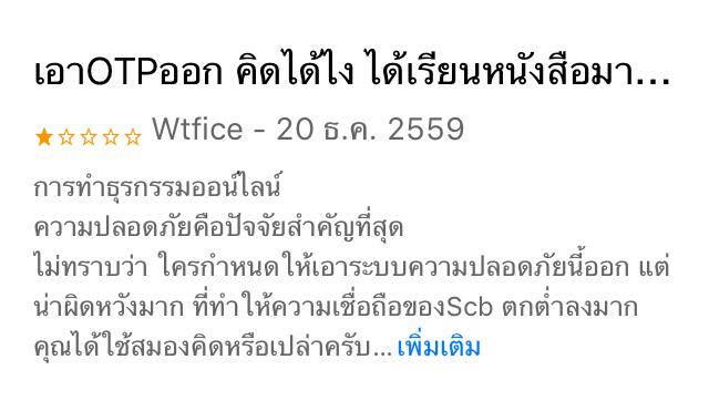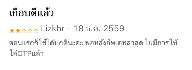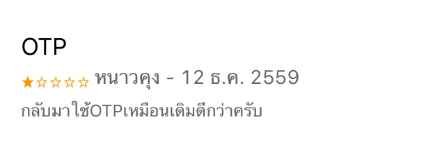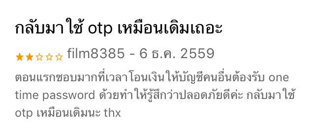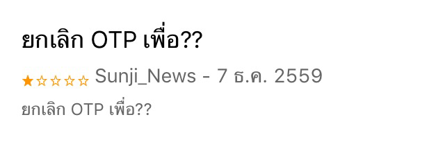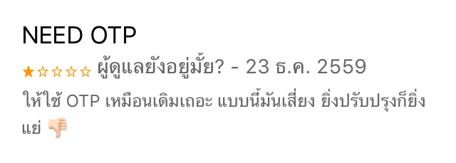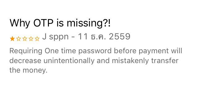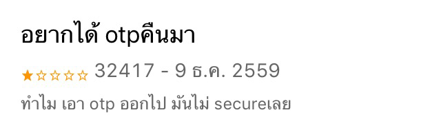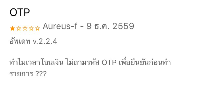 ลองคิดใหม่นะ เพราะถ้าไม่มี OTP ผมก็เลิกทำธุระกรรมผ่านทางแอพครับ เพราะไม่มีความปลอดภัยอะไรเลย