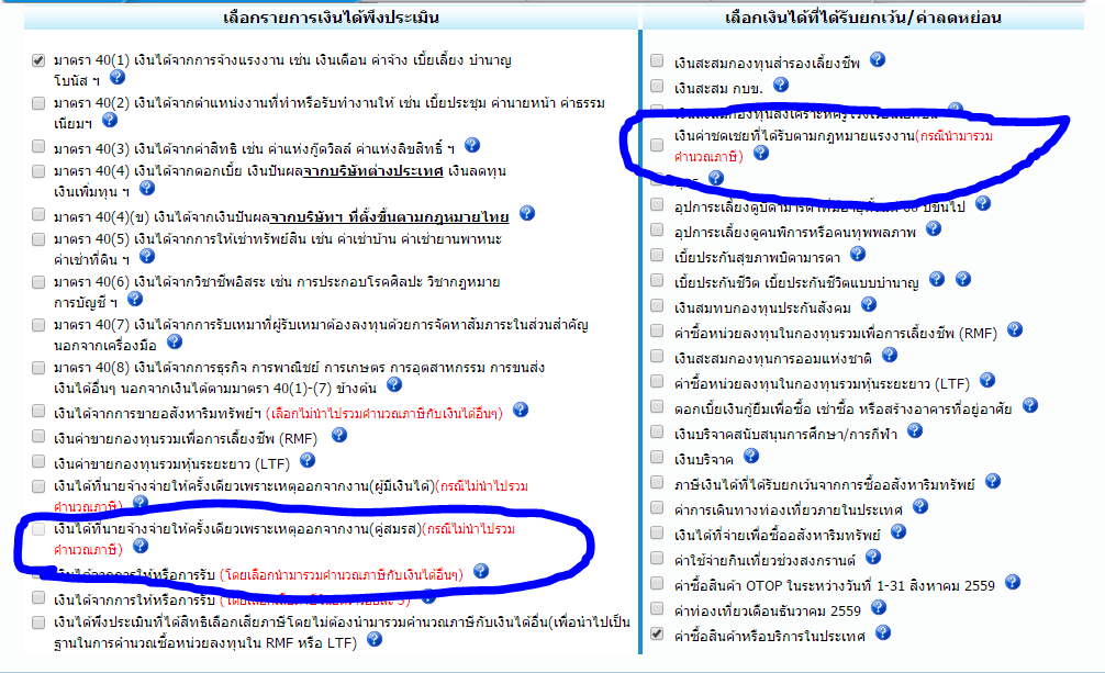 ผมเดาว่าเอกสาร 50 ทวิ น่าจะแยกเป็นเงินสองก้อนครับ ก้อนแรกคือ เงินเดือน ก้อนที่สองคือเงินชดเชย นำสองก้อนนี้มารวมกันเลยครับ สมมติว่าได้ 1 ล้านนะครับ ส่วนการเลือกเงินได้ที่ได้รับยกเว้น/ได้รับลดหย่อนก็เลือกตามที่วงถูกต้องแล้วครับ พอมาหน้าถัดไปก็ใส่จำนวนเข้าไปครับ สมมติว่า 50K (ระบบเค้ากั้นไว้แล้วครับไม่ให้เกิน 300K) จะพบว่าเงินที่ไปคิดภาษีถัดไปก็จะเหลือ 950K แล้วครับ เหมือนกับไม่ได้เอาเงินก้อนนี้มาคิดภาษีครับ หวังว่าคงพอจะเข้าใจนะครับ