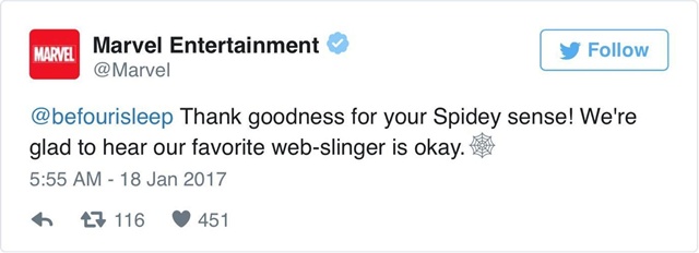 ค่าย Marvel ก็ทวีตมาแสดงความห่วงใยถึง Styles ด้วย