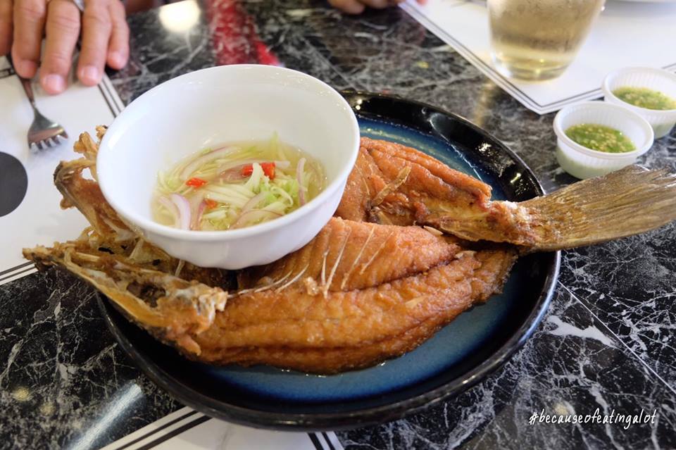 อันนี้ก็เด็ด ปลากระพงทอดน้ำปลา ปลามาทั้งตัวเต็มๆ ขนาดไม่ได้ใหญ่แต่ทอดร้อนๆ น้ำราดอร่อยถูกใจ อันนี้สั่งซ้ำเช่นกัน