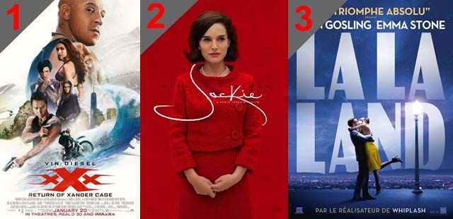 อันดับ 1 : xXx: Return of Xander Cage ภาพยนตร์ที่มาพร้อมความมันส์แบบถึงใจบวกกับบ้าระห่ำและความอลังการของเอฟเฟ็กต์ เป็นหนังที่เน้นฉากบู๊มากกว่าความสมเหตุสมผลของเนื้อเรื่อง ซึ่งคาดว่าถูกใจแฟนๆ หนังแอ็คชั่นแน่นอน
