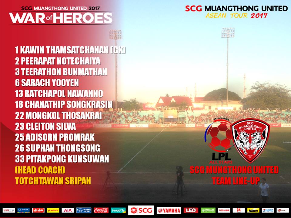 ออกมาแล้วครับ!! สำหรับรายชื่อผู้เล่นตัวจริง "กิเลนผยอง" เอสซีจี เมืองทอง ยูไนเต็ด พบกับ ลาว พรีเมียร์ลีก ออลสตาร์