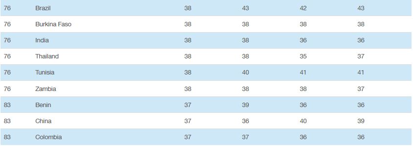 2015 ข้อมูลเริ่มเห็นเลือนลาง 38 คะแนน อยู่อันดับ 75 ของโลก