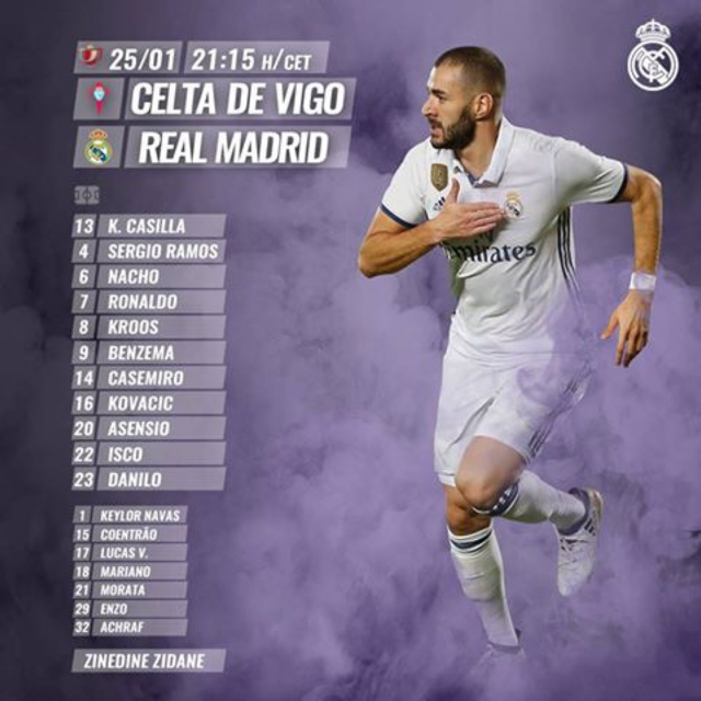 รายชื่อ 11 ผู้เล่นตัวจริง และสำรองของเรอัล มาดริดวันนี้ค่ะ... วันที่ใช้แผน 1-4-4-2 กองหลังคู่เซ็นเตอร์ เปลี่ยนเป็นเฮียมอสกับพี่โช่ (วาราน สำรอง) # HalaMadrid สู