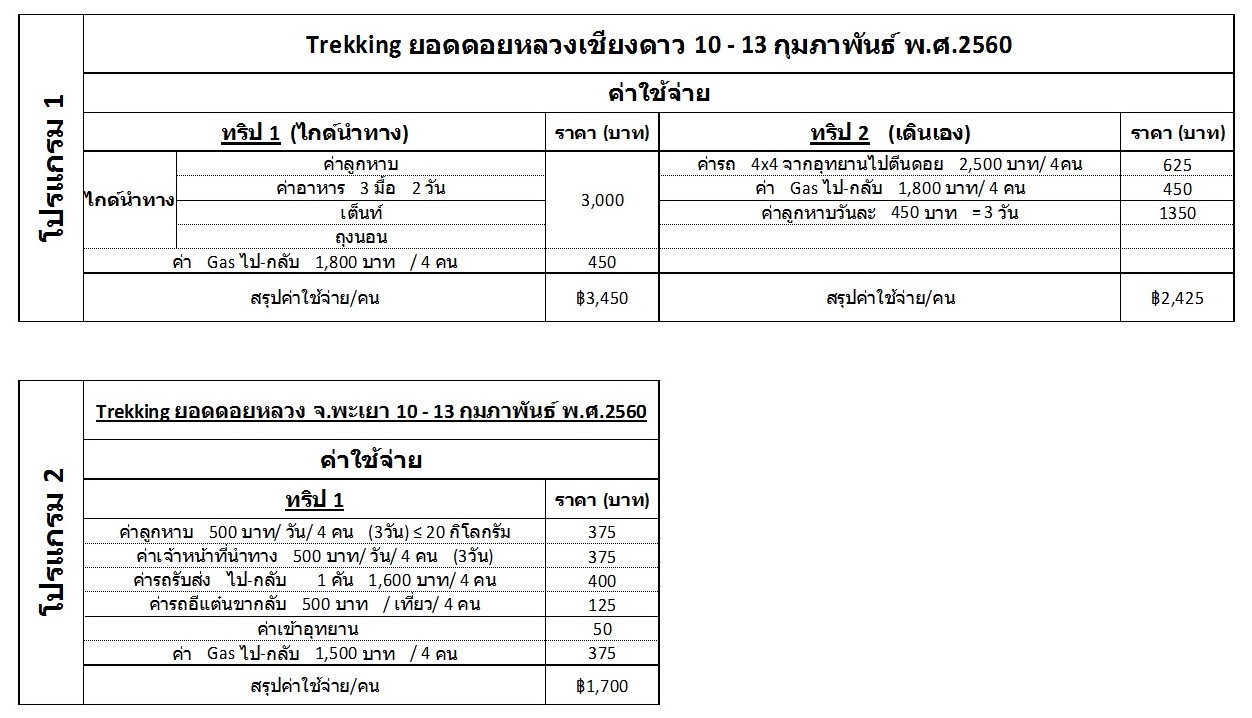 ใกล้วันวาเลนไทน์แล้วเลยอยากจะชวนแฟนไปเดิน Trekking กัน เลยวางแพลนว่าจะไปเที่ยวกันในช่วงวันที่ 10-13 กุมภาพันธ์ 2560 นี้ จึงอยากจะมาสอบถามความคิดเห็นครับว่าโปรแกรมที่แพลนเอาไว้แบบไหนจะดีกว่า โดยส่วนตัวผมอยากได้บรรรยากาศสวย หนาว และทะเลหมอกแบบอลังการครับ ท่านใดที่มีประสบการณ์มาแล้วสามารถแชร์ความคิดเห็นได้นะครับ ขอขอบคุณทุกท่านและทุกความคิดเห็นครับ