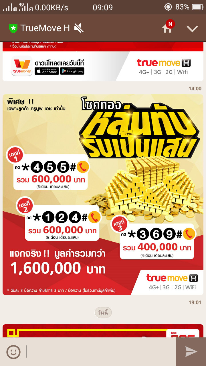 มี SMS ไปถึงบอกว่า จะอัพเกรดเป็นทรูมูฟเอชให้โดยอัตโนมัติ แต่ถ้าไม่ต้องการให้โทรแจ้ง ก็ผมอยู่ดีๆของผม จะให้ผมโทรไปให้ยุ่งยากทำไมกัน ผมมีทรูอยู่สามเบอร์ ต้องโทรไปบอกทั้งสามเบอร์เลยเหรอนี่ รายละเอียดบอกว