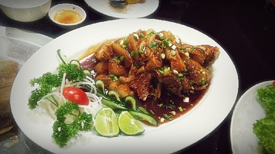 ส่วนด้านล่างก็เป็นร้านอาหารทั่วไป มีเวที พนักงานเสิร์ฟผมเจอคนที่พูดภาษาไทยได้เป็นคำๆ แนะนำดี บริการดีมาก ขยันมาก ถ้ามาตอนกลางคืน น้องบางคนต้องออกไปยืนตรงทางเข้าที่ถนนเพื่อรับแขก จะสังเกตได้ว่ามี 3 คน ใส่เสื้อสี แดง น้ำเงิน เหลือง ทั้งสามคนนี้สีใครสีมัน (ที่ทราบเพราะว่าผมไปทานเมื่อวันจันทร์ 1 ครั้งกับเพื่อนตอนเย็น และวันพฤหัสกับแก๊งค์ที่ออฟฟิตตอนเที่ยง) พนักงานเสื้อสีเหลืองที่มาบริการก็จำหน้าผมได้ต้อนรับเป็นอย่างดี
