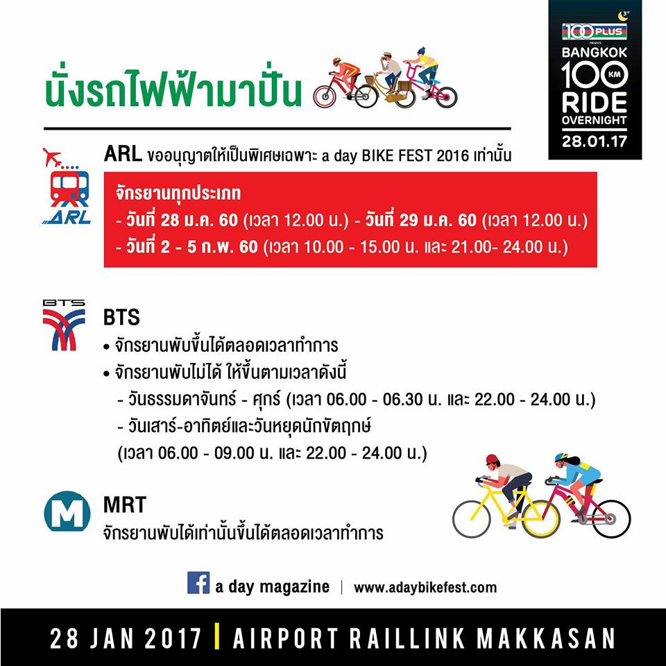 สามารถเอาจักรยานขึ้นAirportLinkในวันที่จัดงาน100Plus presents a day BIKE FEST 2016 ได้ไหมครับ?