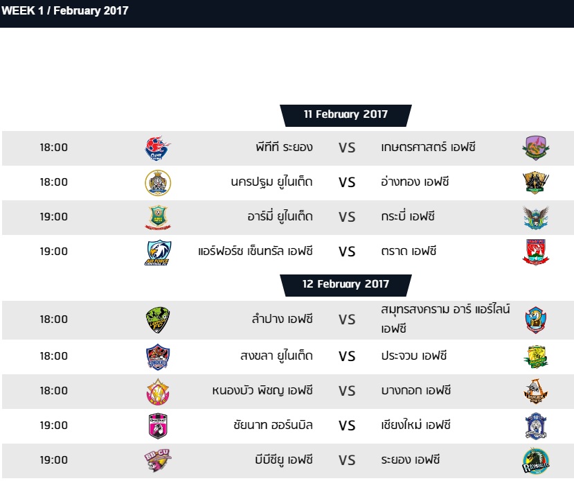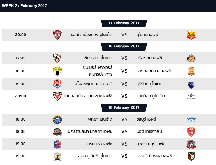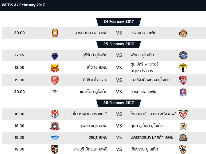 มาแล้ว! โปรแกรมไทยลีกและไทยลีก2 เดือนกุมภาพันธ์