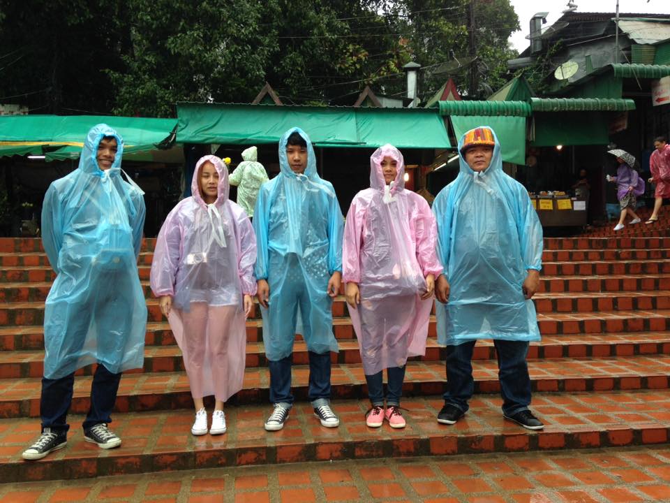 เมื่อทานอาหารเสร็จ ลุงสมคิดก็พาพวกเราขึ้นดอยสุเทพ ไปไหว้พระธาตุ แต่เนื่องด้วยวันนี้ฝนตกปรอยๆ ทำให้มีหมอกหนามาก ต้องซื้อเสื้อกันฝนใส่ขึ้นดอยสุเทพกันเลยทีเดียว