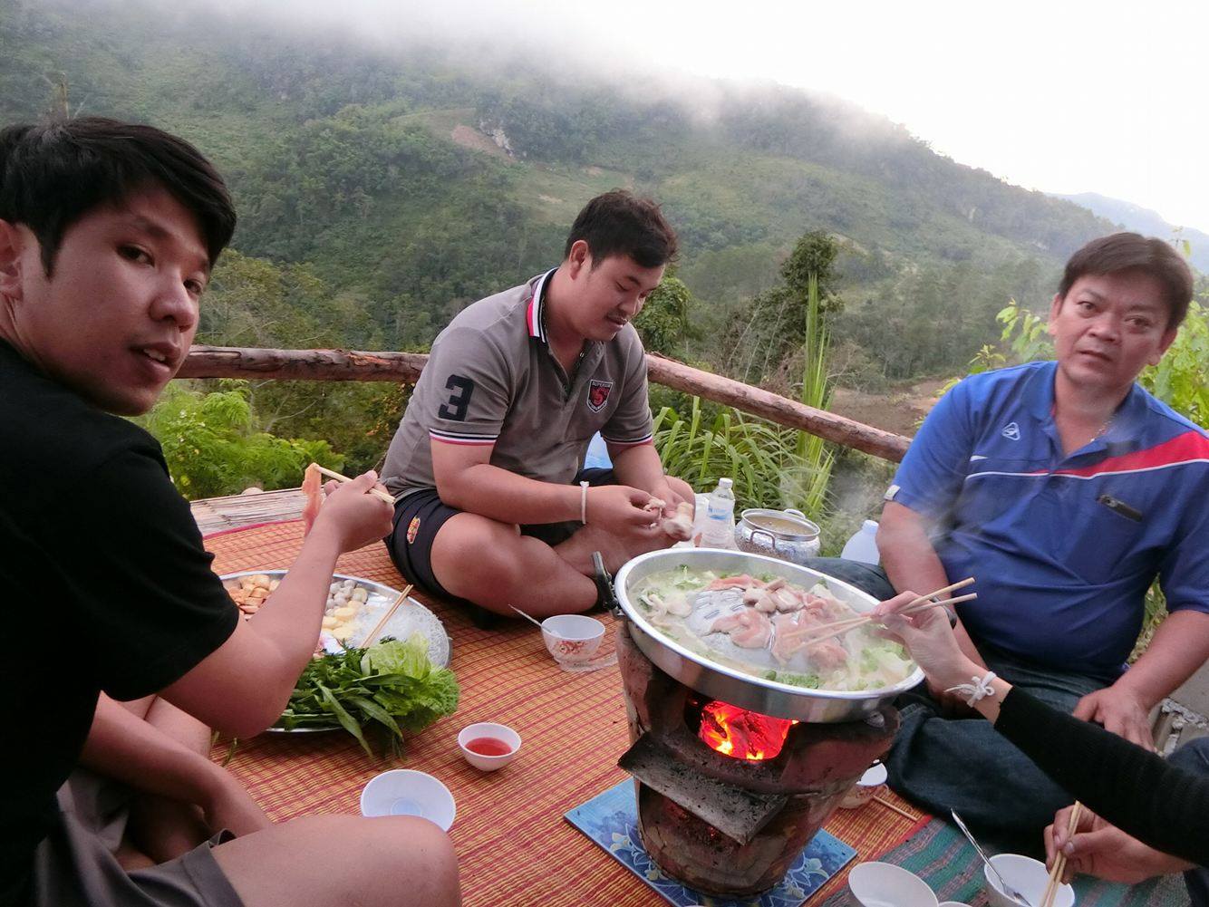 หมูกระทะชุดนี้ ซื้อแยกนะคะ ไม่ใช่ของทางที่พัก (ชุดละ 550 บาท) คิดดูสิ หมูกระทะหอมๆ ท่ามกลางอากาศหนาวกำลังดี กินไปดูหมอกไป แสงอาทิตย์สลัวๆ ที่กำลังลาลับขอบฟ้า มันช่างฟินอะไรขนาดนี้ หื้มมมม ม