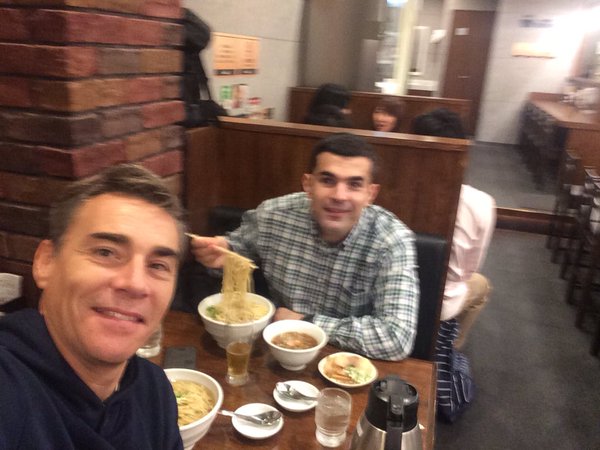 ซัดราเมงกะปุลปิสที่ชิบุยะ ในโตเกียว ทั้งคู่มีประสบการณ์เป้นโค้ชฟุตซอลไทย