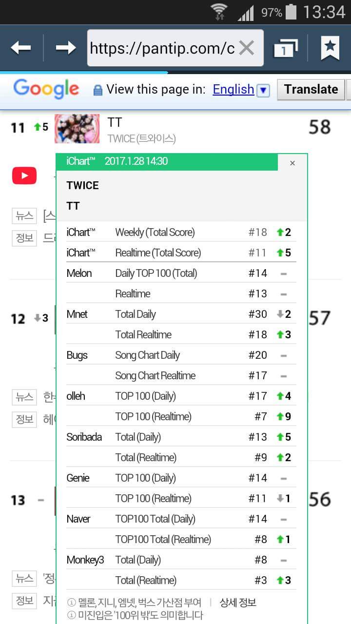 รูปใหญ่มาก ขออนุญาตใส่สปอยนะคะ ของจริงไหมอะคะ เค้าเอามาจาก Gaon Top 400 หรือเปล่า เรารู้สึกว่า Monster จะหลุดโหลด Top 100 ผลุบๆโผล่ๆ ตั้งแต่ปลายๆปี 2016 บางสัปด