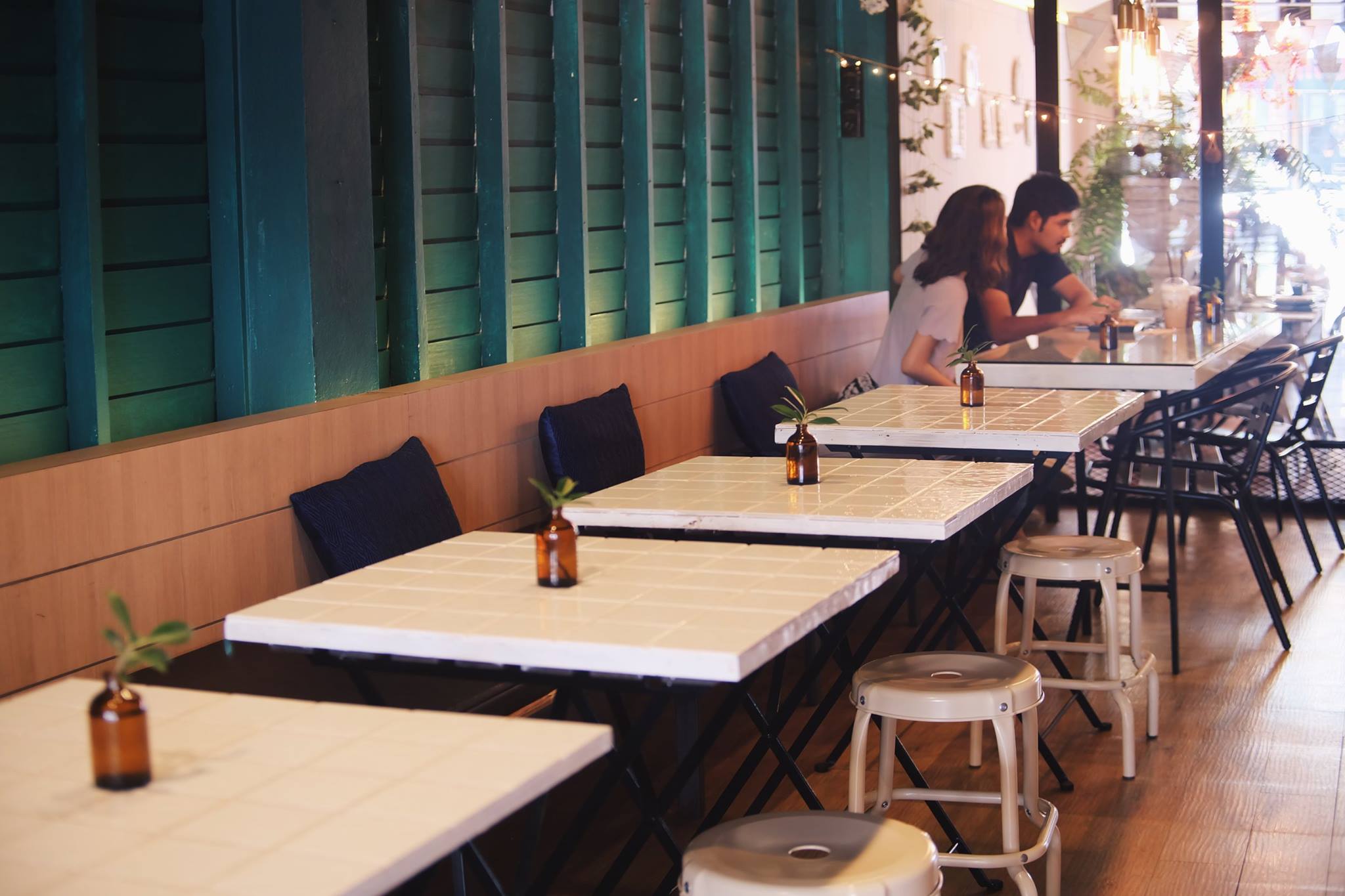 บรรยากาศมีทั้งนั่งด้านนอกและด้านใน