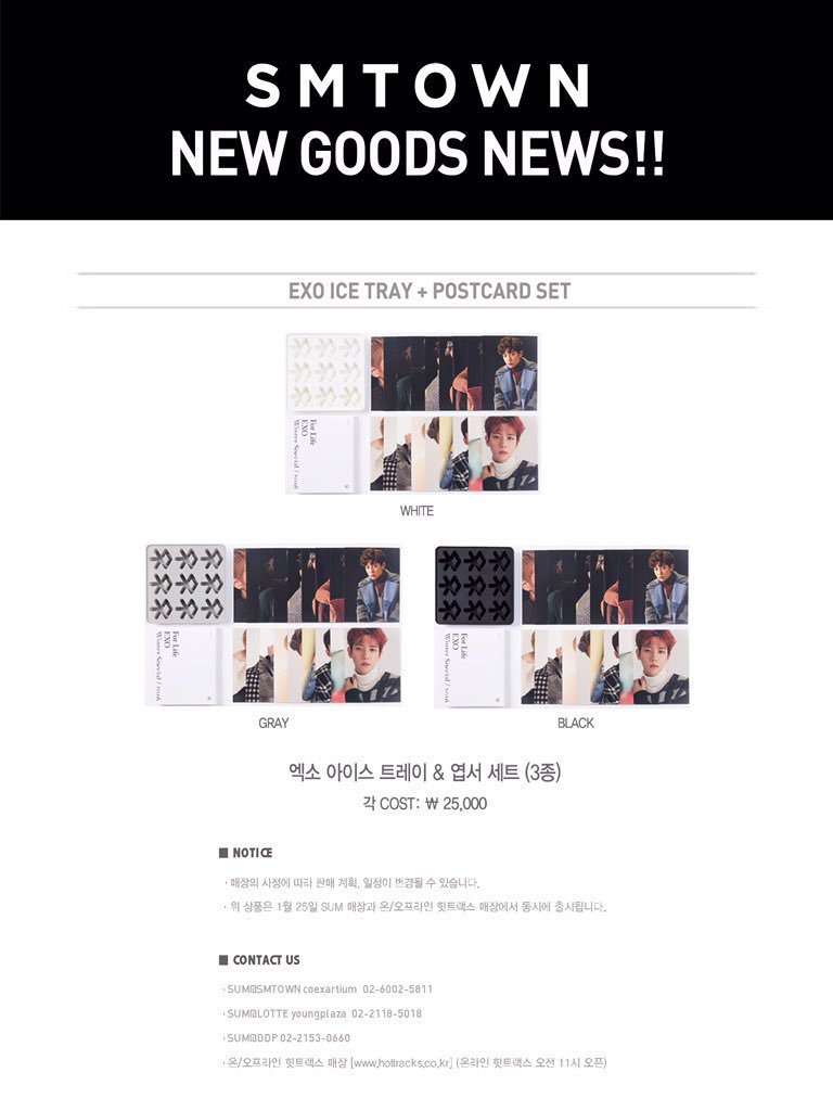 170124 EXO Vyrl อัพเดท สินค้าออฟฟิเชียลใหม่ของเอ็กโซ EXO ICE TRAY + POSTCARD SET (สีขาว สีเทา สีดำ) ราคาชุดละ 25,000วอน จำหน่ายวันที่ 25 ม.ค