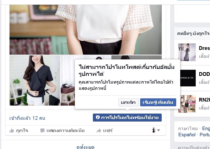 โปรโมท อัลบั้มภาพใน facebook ไม่ได้ค่ะ (boost unavailable) รบกวนแนะนำด้วยค่ะ