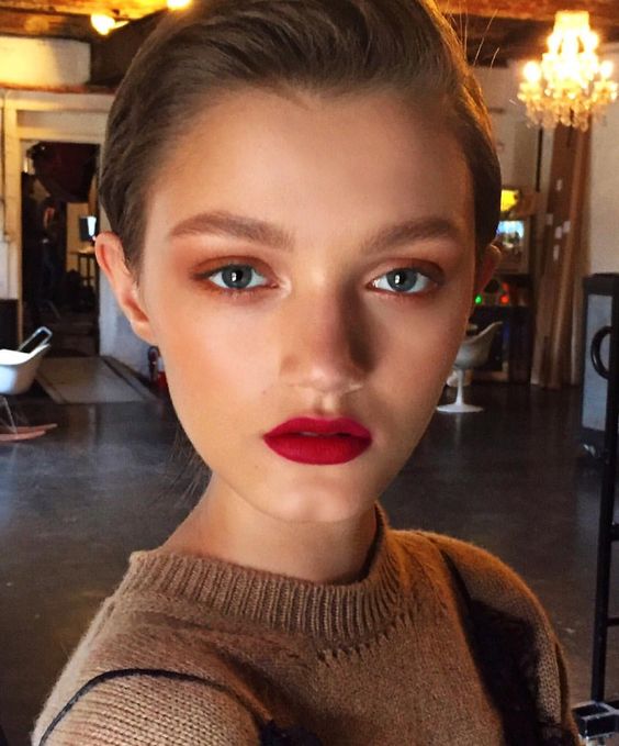 หรือเพิ่มลูกเล่นด้วยการทาตาสีแดง และลงลิปกลอสใสทับ กลายเป็นสีแดงแบบวาว ก็ได้ลุคสดใสดีเหมือนกัน