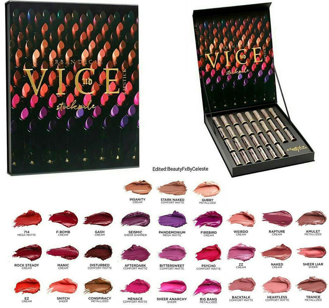 เลยลองมาหาๆค้นๆ ใน อินเตอร์เน็ต เจอ เซ็ตนี้ Urban Decay Vice Lipstick Stockpile ลองดูยี่ห้อคุ้นๆ เหมือน พาเรต naked ที่ผู้หญิงเค้าฮิตๆกันแต่ก่อน ขายลดอยู่ 11,700 บาท มี 30 แท่ง (เยอะดี อยากได้เยอะๆใช่ไหม หึหึ) แต่ไม่รู้เค้าเล่นกันไหม สีพวกนี้คือสีที่ขายไม่ดี แล้วมาจัดเซตขายหรือเปล่า เห็นบอกว่ามี 17 เซ็ต ทำไมยังขายไม่หมดอีก... ? กลัวจะโดนต๊อกกลับมาว่า เค้าไม่เล่นกันแล้วซื้อมาทำไม T.T