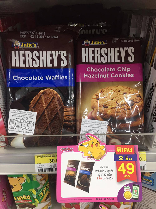 HERSHEY’S ยี่ห้อที่รู้จักกันดี ที่มาในมาดความเด่นของช็อคโกแลต อันนี้มาเป็นคุ้กกี้ช็อคโกแลต เอาใจทุกคนไปให้สุดๆ55555 กับ วาฟเฟิลช็อคโก และ ช็อคโกแลตชิพ เฮเซลนัท  รสชาติดีทั้ง2ห่อจ้า ช็อคแลตเข้มข้น ฟินๆ