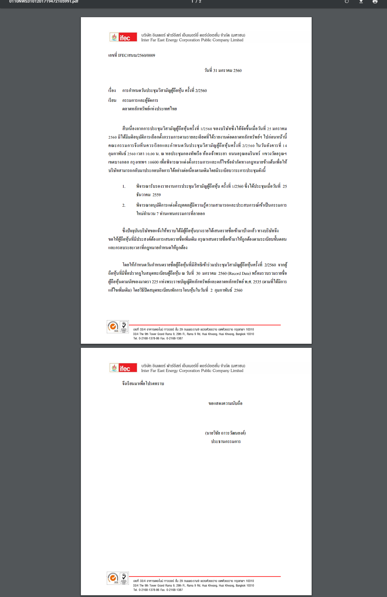 IFEC ประกาศสถานที่และเวลาประชุมแล้ว ก่อนหน้านั้นประกาศแค่วันที่ประชุม แต่รายชื่อกรรมการที่ให้ ผถห. ลงมติไม่ประกาศ