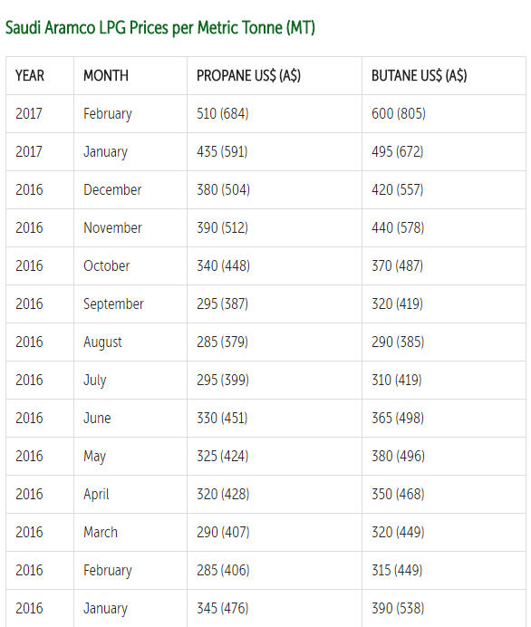ราคา Propane และ Butane ของเดือนกุมภาพันธ์ 2560