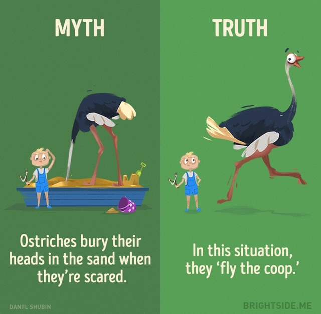 นกกระจอกเทศไม่ได้เอาหัวมุดดินเพราะกลัว แต่ถ้าเจออันตรายมันจะวิ่งหนีไปให้ไกล