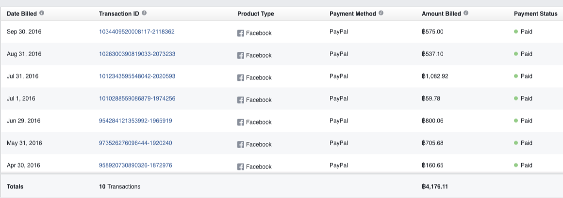 มีการหักบัญชีบัตรเดบิต ใน paypal เป็นค่าโฆษณา facebook ทั้งๆที่ ผมไม่ได้ยิงโฆษณามาตั้งแต่เดือนกันยายน 59 แล้ว