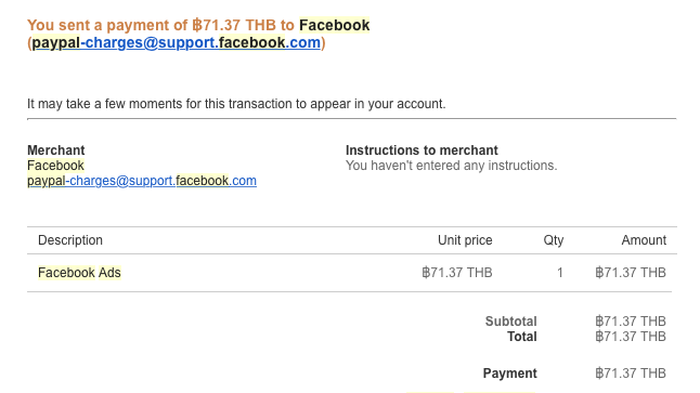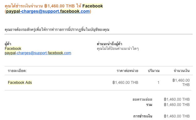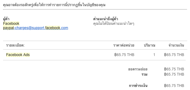 ข้อสงสัยเกี่ยวกับการเรียกชำระเงินจาก paypal ค่าโฆษณา facebook