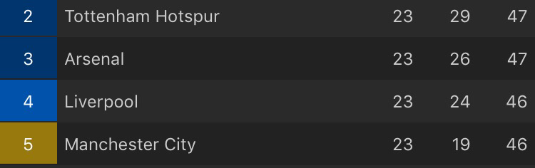 พรีเมียร์ลีก โซนลุ้นไปยูฟ่าแชมเปี้ยนลีกส์คิดว่าทีมไหนจะไม่ได้ไปครับ