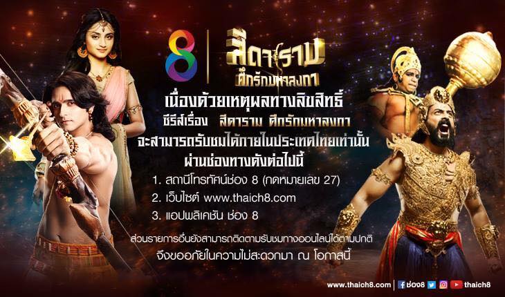 มหากาพย์วรรณกรรม ตำนานรัก ตำนานโลก "สีดาราม ศึกรักมหาลงกา" ซีรีส์ "สีดาราม ศึกรักมหาลงกา" จะบอกเล่าเรื่องราวความรักอันยิ่งใหญ่ระหว่างพระรามซึ่งก็คือพระนารายณ์ผู้อวตารลงมาเกิดยั