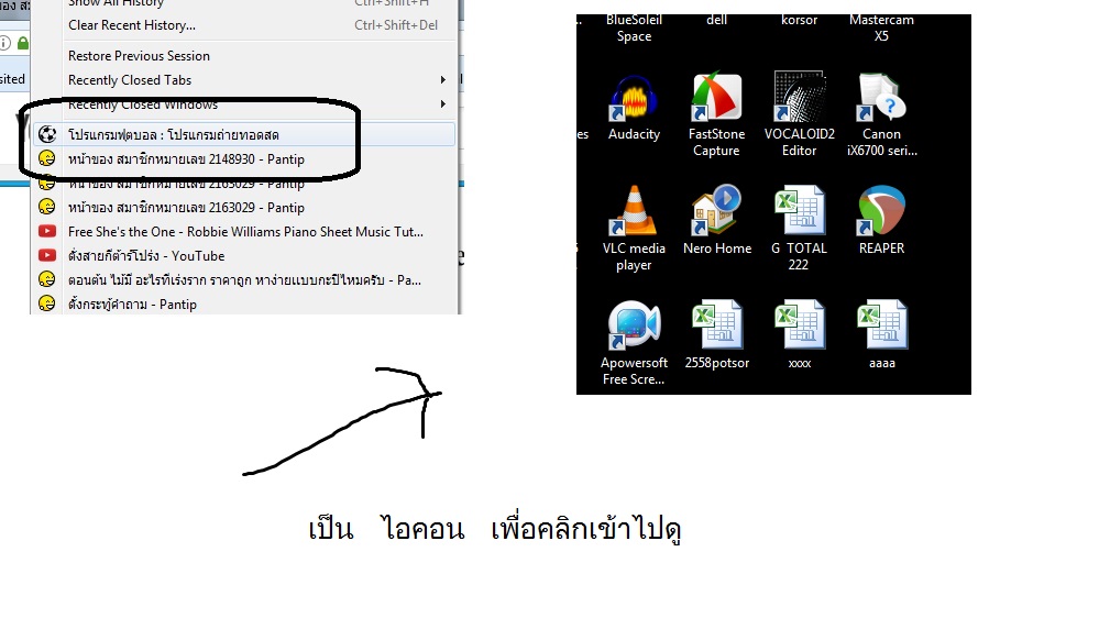 ต้องการนำ เวปดูบอลจาก bookmark ทำเป็น ไอคอนคลิกเข้าไปดู ต้องกำหนดยังไงครับ
