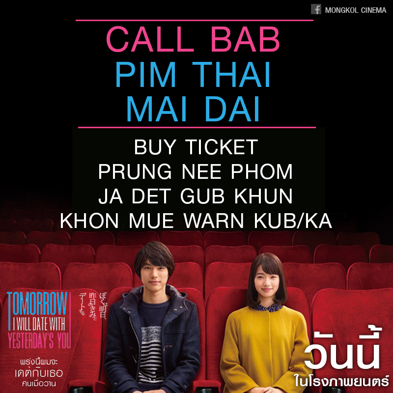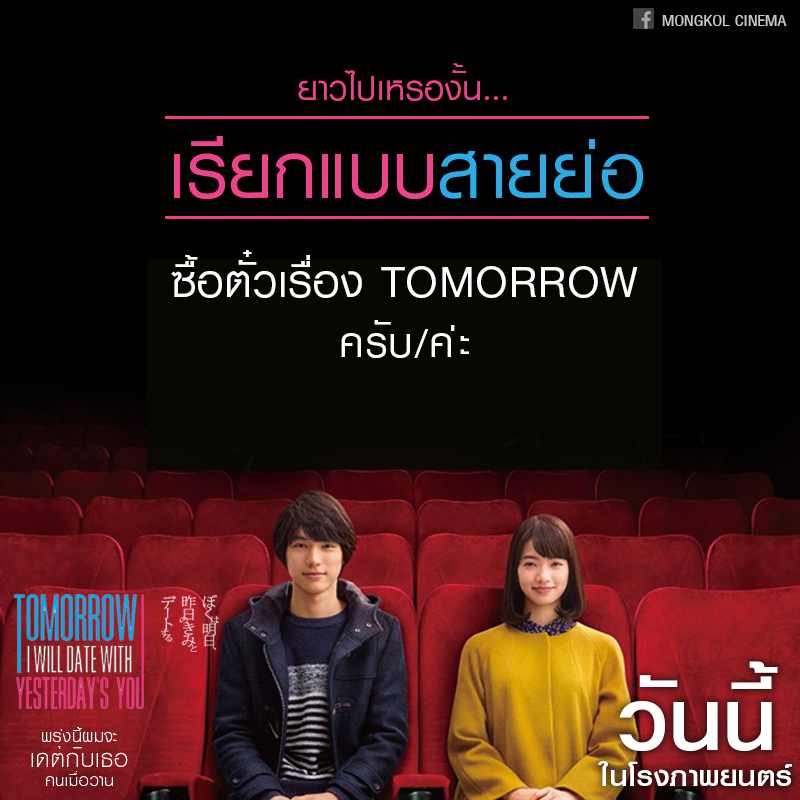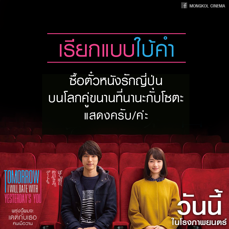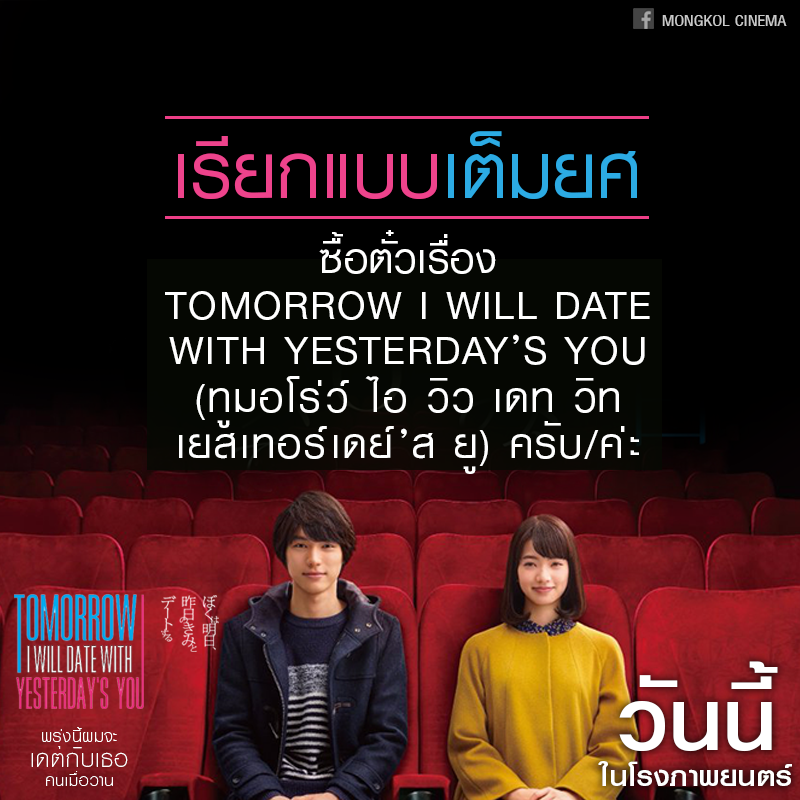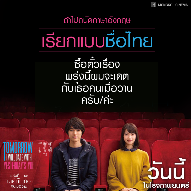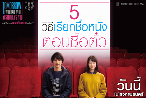 5 วิธีเรียกชื่อหนังตอนซื้อตั๋วหนัง "Tomorrow I will date with Yesterday’s you" พรุ่งนี้ผมจะเดทกับเธอคนเมื่อวาน