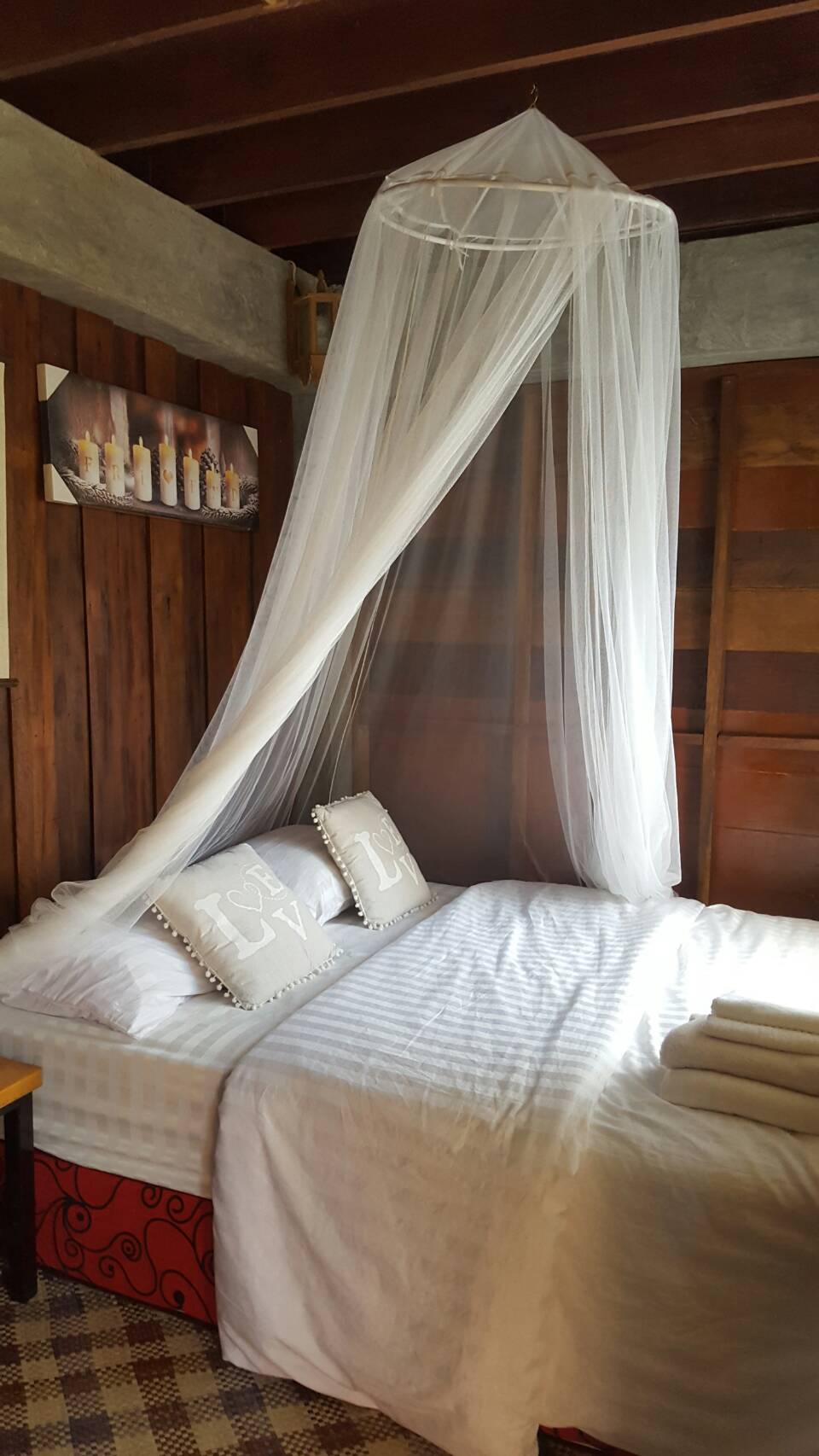 ตอนนั้นค่อนข้างรีบไม่มีเวลาชิวนานนัก ผมกลัวช้าครับ เพราะตอนนั้นบ่าย2 โมงแล้ว ก็เลยรีบหาที่พักต่อ สุดท้ายผมลงเดินครับ เพราะที่แม่กำปองถนนแคบมากไม่มีที่จอดรถครับ (ผมเดินคนเดียวให้เพื่อนขับรถวนไปครับ) วิธีการคือเอาภาพในเน็ตนี่แหละครับ ถามชาวบ้านไปเรื่อยๆว่าที่พักที่นี่อยู่ตรงไหน สุดท้ายครับ ก็เจอที่พักแห่งนี้ บอกเลยครับว่าตอนแรกถอดใจแล้ว เตรียมหาที่พักที่อื่นแล้ว ถ้าหาไม่เจอ ก็จะเปลี่ยนที่อื่นทันที สุดท้ายก็เจอครับ
