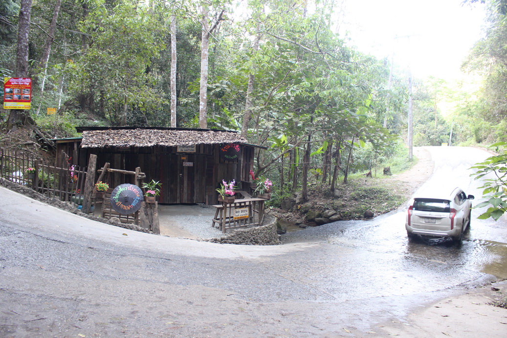 และเมื่อเข้าถึงหมู่บ้านแม่กำปอง ผมก็เปิดแผนที่ หาสถานที่พัก แต่ไม่มีขึ้นบนแผนที่เลย โทรหาก็ไม่ติด (โทรหลายรอบมากครับ) ยิ่งลุ้นหนักกว่าเดิมอีกครับ สุดท้ายผมก็เลย ไปถึงน้ำตกแม่กำปอง และต้องวนรถกลับ แต่ก็ยังดีครับ เพราะว่าจุดแรก ที่ผมได้ถ่ายรูปกับแม่กำปอง ก็คือ ร้านกาแฟชมนกชมไม้ ที่เป็นจุดไฮไลท์ของที่นี่
