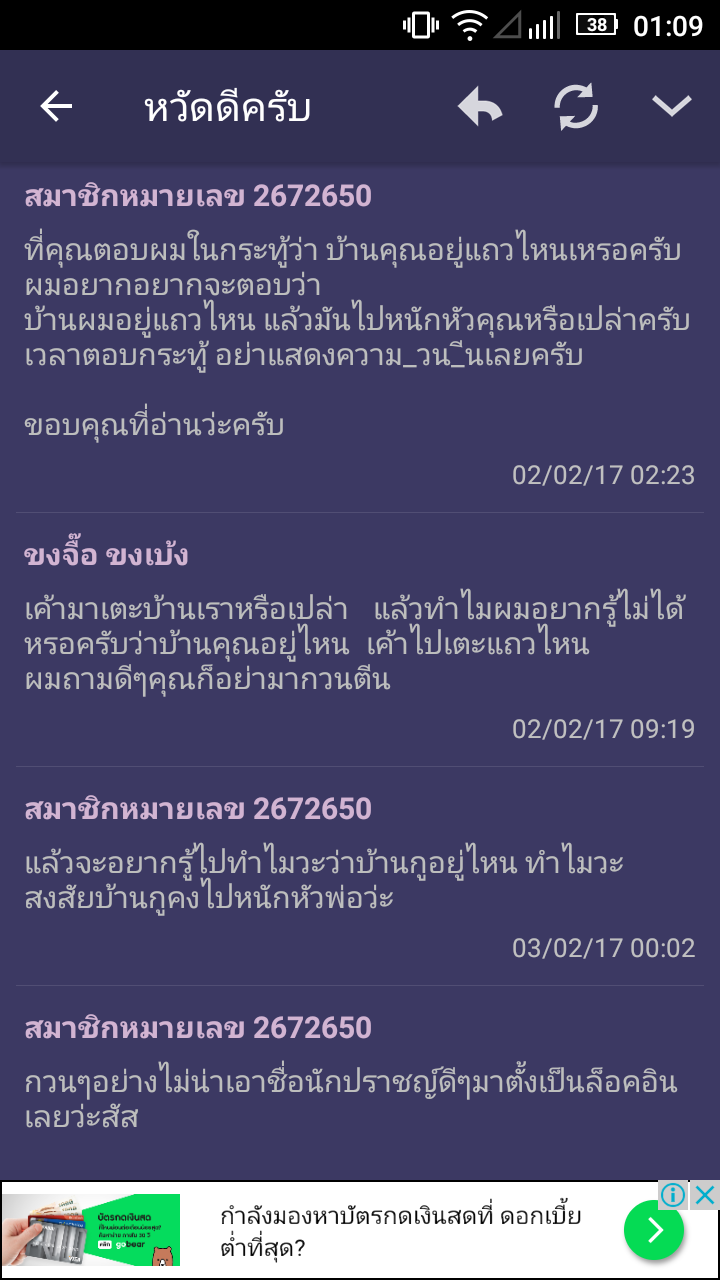 เจอ login โรคจิต ตามส่งข้อความทั้งในกระทู้และ inbox