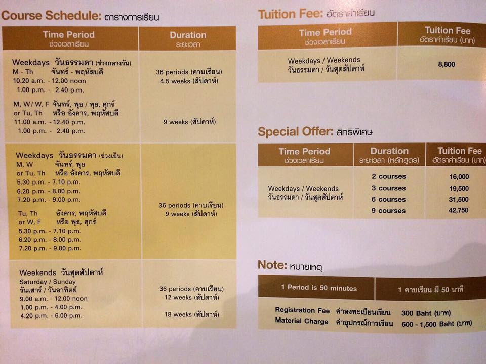 – ปกติถ้าลงเรียนเอง 1 คอร์สจะ 8,800 บาท เรียนได้ 36 คาบ (คาบละ 50 นาที) ถ้า 2 คอร์สจะราคา 16,000 บาท เรียนได้ 72 คาบค่ะ