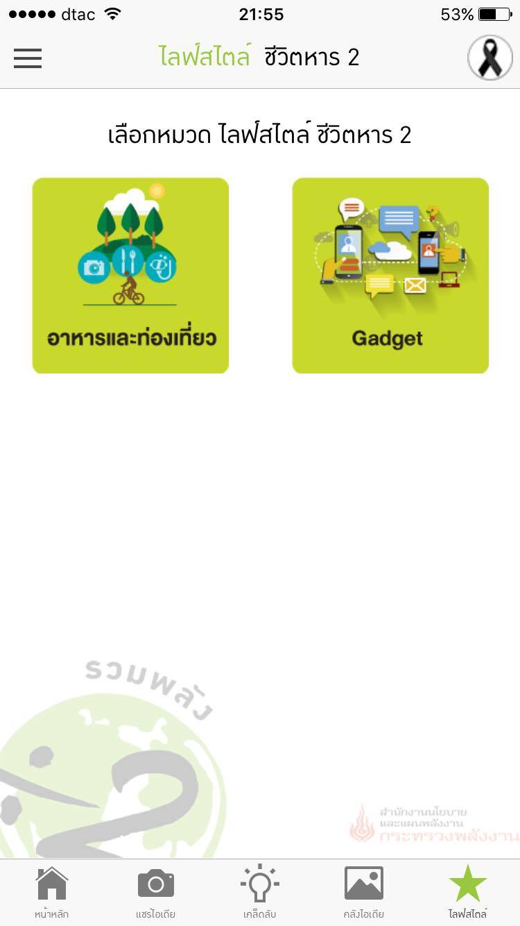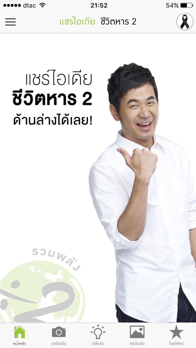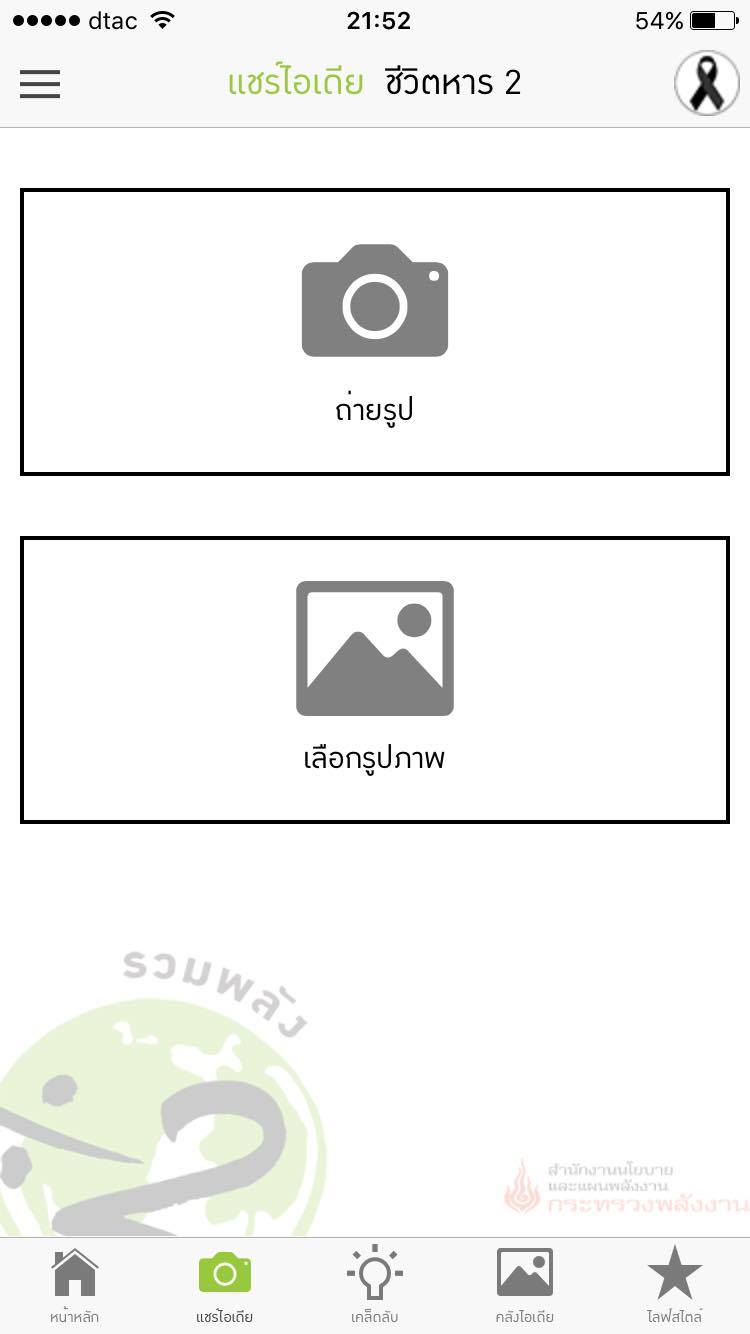 ฟังก์ชั่นแรกที่ผมเลือกก็คือ แชร์ไอเดียครับ ก็พี่สแตมป์เขาบอกว่าให้แชร์ไอเดีย ก็ต้องเลือกหมวดนี้สิครับ พอคลิ๊กเข้ามาก็จะต้องเลือกว่าจะถ่ายรูปใหม่ หรืออัพโหลดรูปภาพในเครื่อง ซึ่งระบบก็ทำงานลื่นดีนะครับ ไม่ต้องรอนาน แถมยังไม่กระตุกเหมือนแอปฯ รุ่นเก่าด้วย